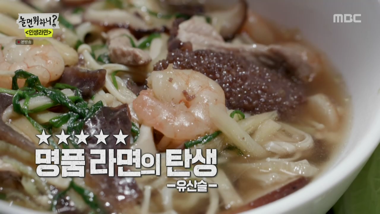 이번 포스팅에선 놀면뭐하니에서 유재석이 만들어서 화제가 된 유산슬 라면 레시피를 정리해보겠습니다.
